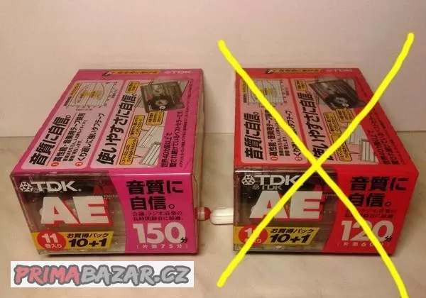 Nabízím jedno balení (11kazet) audiokazety TDK AE 150, cena 1500kč. Prodej pouze celého balení. Kazety jsou nové zabalené, nepoužité.
