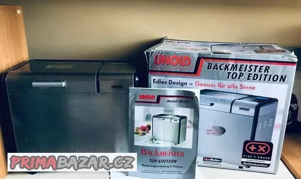 Prodám poloprofesionální plně automatizovanou domácí pekárnu na chléb. Obsahuje celkem 11 defaultních programů a jeden bonusový, nastavitelný dle vlastních preferencí. Možnost pečení chleba o váze až 1200 g. Mimo pekárnu samotnou se k nabídce vztahuje i původní krabice, uživatelský manuál, hnětací hák a pečící forma.