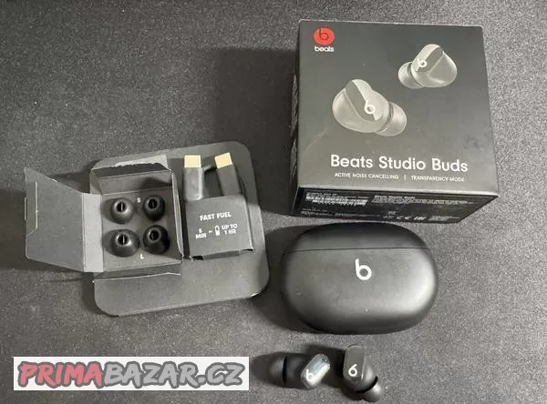 Prodám slucháka Beats Studio Buds černá s active noise cancelling a transparency mode.