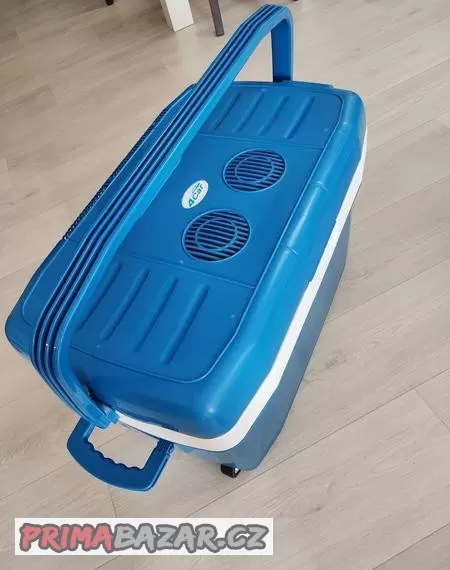 Prodám cestovní ledničku, rozměry délka 60 cm, šířka 35 cm, výška 45 cm. Obsah cca 30 litrů. Lednička má na jedné straně kolečka pro lepší manipulaci, lze zapnout i do normální sítě.
