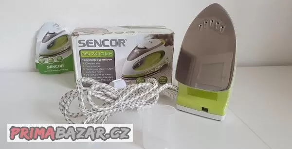 Cestovní napařovací žehlička Sencor. Je jako nová, párkrát použitá. Kompletní balení v originální krabici. Žehlící plocha má rozměr 8,2 x 12,5 cm. Délka celé žehličky je 17 cm - je malá, fajn na cesty. Předání v Českých Budějovicích nebo poslání.