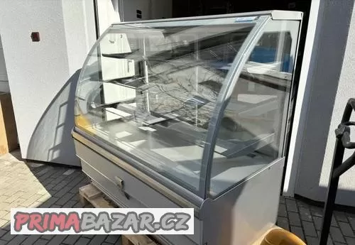V krásném stavu, provedeno kompletní čištění a dezinfekce, výměna hlavních náhradních dílů chlad. okruhu, seřízení a kontrola servisem, na základě které je na vitríně 12 měsíců záruka. K prodeji 4 ks. Rozměr: 1438 x 770 x 1366 mm, ventilovaný prostor, rozsah teplot: +3 až +8°C, osvětlení polic pro prezentaci produktů, napájení 230V. Přední sklo vakuové, oblé, tvrzené, v hliníkovém profilu se zlatým sítotiskem, zadní posuvná izolační skla, má vakuovaná skla, tudíž nízká spotřeba energie. Cena 45 980 Kč za 1 ks (38 000,- bez DPH).
