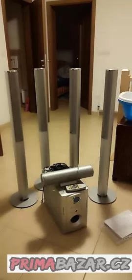 Soustava celkem 4 samostatně stojicich sloupových,věžových reproduktorů,jeden středový a jednoho subwooferu (5.1) ideální pro prostorové ozvučení jakékoliv místnosti.