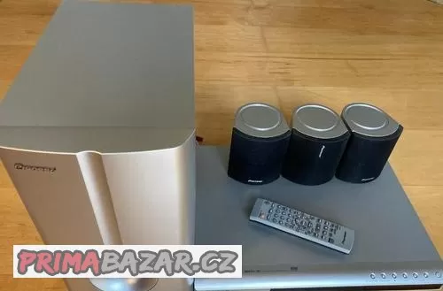 nabízím domácí kino značky Pioneer model XV-DV232. Celá sestava obsahuje DVD přehrávač, subwoofer, 5x reproduktor, dálkové ovládání a kabely. Zařízení je použité, ale bez poškození, funkční a nabízí vysokou kvalitu zvuku. Další informace na fotkách nebo není problém napsat dotaz. Cena dohodou.