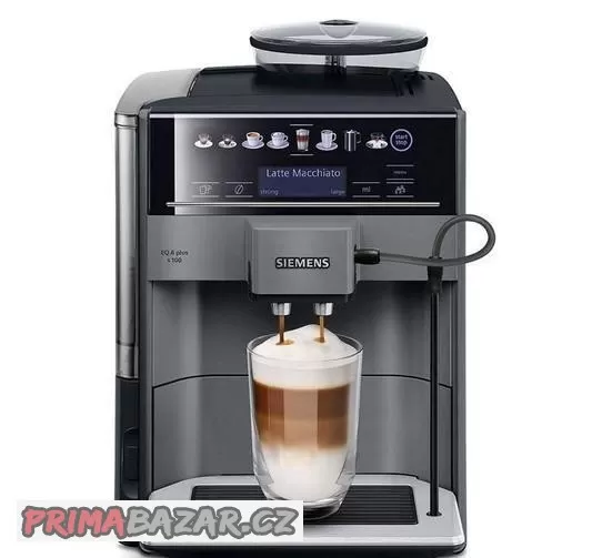 Pouze rozbalený a odzkoušený plnoautomatický kávovar, espresso od Siemensu. Jedná se o výborný model Siemens EQ.6 plus TE651209RW v černošedé barvě.