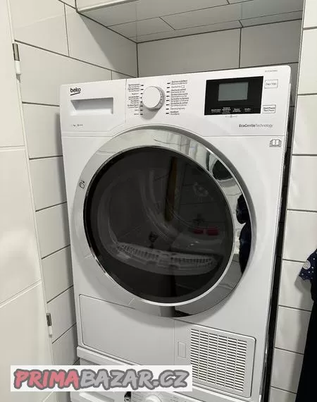 Sušička Beko, třída A+++, kapacita 7 kg, funkce EcoGentle, dvojitý filtr, nové nožičky (originál Beko), 4 roky stará, plně funkční.