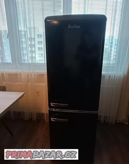 Amica lednice s mrazákem, volně stojící, třída E, šířka 55 cm, hloubka 61,5 cm, 54 kg. Typ lednice VC 1622 B. Na dveřích malý důlek (viz foto), jinak bez vad. Používaná rok, stále v záruce.