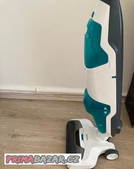 málo používaný, umí vytírat i luxovat, na nabíjení, lehký, skladný