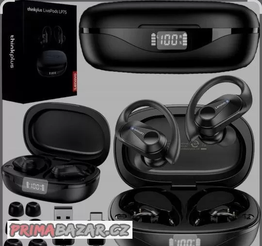 Prodám nová zabalená bezdrátová sluchátka Lenovo LivePods LP75 skvěle drží v uších za všech okolností díky své konstrukci s poutky za uši. Titanové reproduktory produkují krásné čisté výšky a silné basy v HiFi stereo kvalitě.