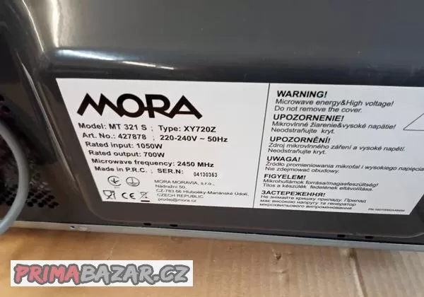 Starší funkční mikrovlná trouba Mora bez otočného talíře.