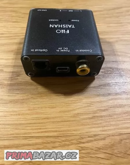 Dva přepínatelné digitální vstupy (optika, koax), dva analogové výstupy 2× CINCH a 1× stereo 3,5 Jack.