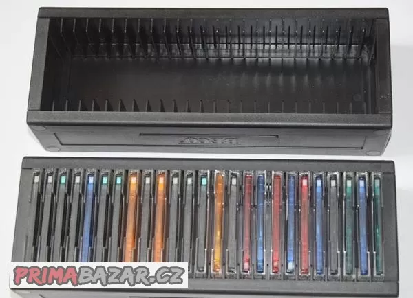 MD minidisk box original HAMA na 25x MD lze složit k sobě pomocí úchytů v rozích, lze uchytit i ke stěně, na sebe apod.