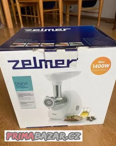 Prodám mlýnek na maso Zelmer 886.5 EX. Výkon 550 W. Výborný stav, jako nový. Dokonale mele všechny druhy masa. Speciální nástavec umožňuje plnit střívka a připravovat domácí klobásy, uzeniny, jelita nebo jitrnice. Kotouče pro jemné i hrubé mletí, řeznický nástavec a pěchovadlo.