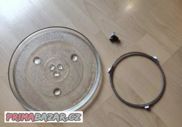 Z dosloužilé mikrovlnky nabízím nepoškozený talíř průměru 31.5cm včetně unašeče a kruhu s kolečky. Třeba se bude někomu hodit.