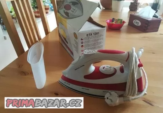 Prodám napařovací žehličku ETA 1281. Barva červená. Cena 499,-.