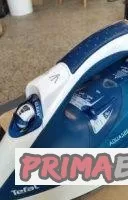 Funkční značková žehlička TEFAL o výkonu až 2400 W. Má keramický žehlící povrch. Vykazuje známky používání.