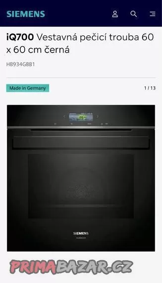 Úplně nová vestavná pečící trouba SIEMENS STUDIO LINE se skleněným madlem z řady IQ700 (nejvyšší řada spotřebičů od zn. SIEMENS) - HB934GBB1 (60 x 60 Cm). Trouba s HOME connectem, TFT dotykovým displayem atd. Na spotřebič je plná záruka 24 měsíců od Vašeho data zakoupení a je na studiu Smiřice u HK. Pův. cena 31 790,-