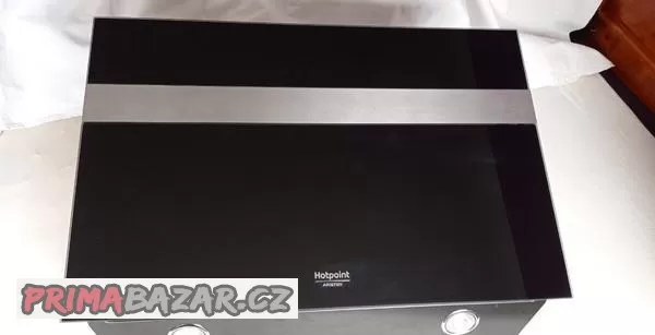 Nabízím k prodeji digestoř Ariston hotspot, materiál kov/sklo - délka 800mm, šířka 525mm (skleněná deska), délka 750mm, šířka 480mm (kovová základna s motorem), průměr roury 150mm, LED osvětlení, dotykové ovládání.