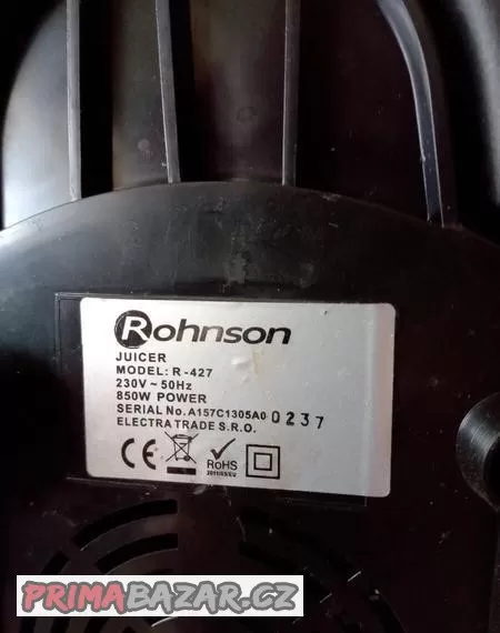 Prodám použitý, funkční odšťavňovač Rohnson.Osobní odběr pouze v Třinci.
