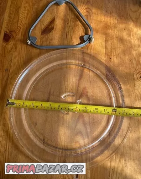 Prodám skleněný otočný talíř do mikrovlnné trouby o průměru 36 cm. Jedná se o náhradní díl k mikrovlnným troubám Whirlpool. Je vyroben ve Švédsku z kvalitního a odolného skla. Včetně unašecího kříže s kolečky.