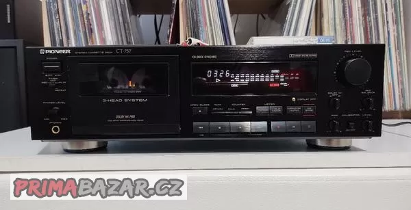 Předmětem prodeje je kazetový magnetofon značky PIONEER. Tape decky jsou opět ve hře a příznivci zmíněného konceptu vědí, že zvuk z magnetického pásku má tu správnou dynamiku. Model CT-757 vyšší střední třídy, který disponuje skvělou výbavou a pěkným designem. Deck nabízí 3motory, 3hlavy umožňující funkci Monitor, autodetekci typu pásky, automatické vyhledávání stop, dolby NR B-C, HX PRO, MPX Filter, skvělý zvuk a velmi kvalitní zpracování. Technický stav v pořádku a plně funkční. Provedený servis: nové řemínky a roller, promazáno, demagnetizováno. Vizuální stav dobrý, několik šrámů na horní straně, viz foto.