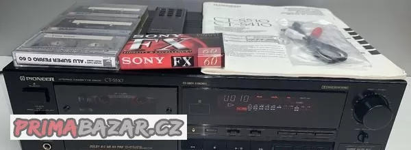 Předmětem prodeje je tape deck značky Pioneer s velmi slušnou výbavou a dálkovým ovládáním. Disponuje 3 hlavami umožňující monitoring záznamu, redukce šumu Dolby B-C a HX-Pro, AMTS, MPX filtr, 4místné elektronické počítadlo fluorescenčního displeje. Vyhledávání titulů +/- 15 stop, ztlumení nahrávání, Super Auto-BLE, Funkce ekvalizace (Sound EQ), CD synchro nahrávání. Lze ovládat pomocí systémového dálkového ovládání. Elektronicky řízený pohon se 2 motory. Technický stav v pořádku a plně funkční. Provedený servis: Nový řemínek a přítlačná kladka. Kosmetika dobrý, zkontrolujte obrázky.