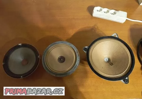 Prodám historické reproduktory Tesla. Tesla PN 632 18, Tesla ARO 567, a jeden na foto uprostřed je bez označení. Reproduktory jsou funkční, ale vzhledem ke staří bez Záruky. Cena za všechny.
