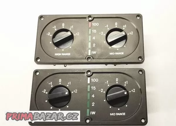 nikdy nepoužité regulátory pro třípásmové reprosoustavy o impedanci 8 ohm včetně indikátorů výkonu