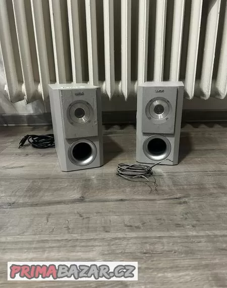 Reproduktory Tekuni. Velmi kvalitní zvuk. Tlačítko zapínání vzadu, úprava bassů a hlasitosti.