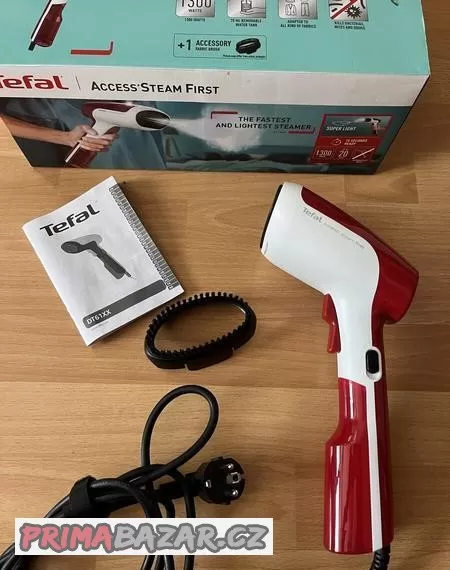 Prodám úplně nový, nikdy nepoužívaný ruční napařovač oděvů Tefal Access Steam First. Příkon 1 300 W • objem nádržky na vodu 70 ml • parní výkon 20 g/min • doba nahřátí 15 vteřin • vhodné pro všechny druhy tkanin. PC 990,-