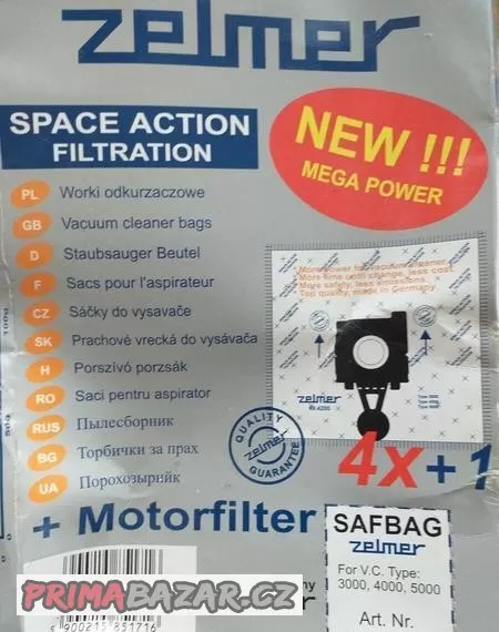 Nabízím sáčky do vysavače Zelmer 49.4220 pro typy vysavačů 3000, 4000, 5000, 5500, ZVC422, ZVC425, ZVC502, ZVC552. Série vysavače: Jupiter, Magnat, Solaris, Solaris Twix . 2ks + 1 motorový filtr. Nové. Již nevyužijeme, rozbil se nám vysavač. Cena 50 Kč celkem. Pouze osobní odběr. Dovezu Blovice, Přeštice, Dobřany, Nebílovy, Plzeň- Olympia, Plzeň - Slovany- Jiráskovo náměstí, Nýřany. Podívejte se i na mé další nabídky. Inzerát platí do smazání.