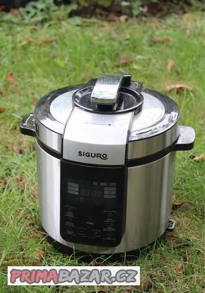 Multifunkční hrnec - tlakový, elektrický, příkon 1000 W, objem 6 l, počet programů 24 (pomalé dušení, smažení, tlakové vaření, výroba džemu, dortů, ohřev potravin, vaření v páře apod.), nerezová vnitřní nádoba, digitální displej, odnímatelný napájecí kabel 1,2 m, odnímatelné víko, napařovač, odložený start, automatické vypnutí, udržování teploty pokrmu až 24 hod.