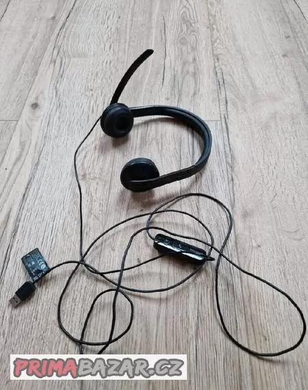 Profesionální sluchátka Microsoft LX 6000 for business s USB konektorem. Sluchátka mají i ovládací tlačítka pro přijímání hovorů a ztlumení mikrofonu. Jsou plně funkční.