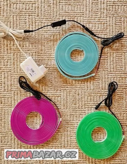 Prodám LED pásky s neonovým efektem ve třech barvách. Délka 5m. Jsem schopen přidat 12V 2.5A zdroje(+100Kč/Ks) nebo vypínače(+30Kč/Ks).