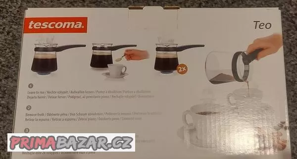 Prodám novou, nepoužitou džezvu k přípravě kávy. Vyrobena z žáruvzdorného borosilikátového skla. Originální balení.Cena 150Kč+zásilkovna na dobírku 102Kč, při platbě předem 79Kč.