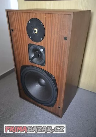 Odpálený výškový reproduktor, basák i střed jsou perfektní. Krycí síťka má jednu dírku a je trochu špinavá. Ozvučnice v hezkém stavu až na jeden růžek - viz foto.