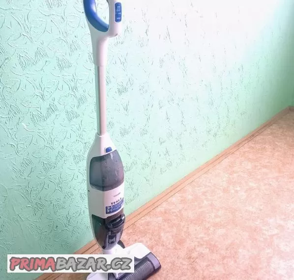 Tyčový vysavač TESLA PowerStar GT400, vysavač a parní 3v1:. Lze vysávat i mopovat samostatně i současně. Cyklónová technologie, vyjímatelný průhledný zásobník na vodu i na prach, indikátor připravenosti páry, dotykový ovládací panel. Bez potřeby čisticích prostředků a chemických látek, eliminuje až 99.9% choroboplodných zárodků a bakterií. Délka přívodního kabelu 8 m. Včetně mopovacího návleku. PC Kč 3789. Vysavač je v dobrém stavu, plně funkční, byl používán jen krátce.