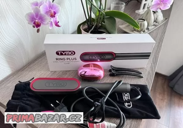 Žehlící kartáč TYMO RING PLUS (nejvyšší řada) s EU zástrčkou, 9 stupňů teploty, iontový systém, LED displej, dvojité napětí, ochrana proti spálení.