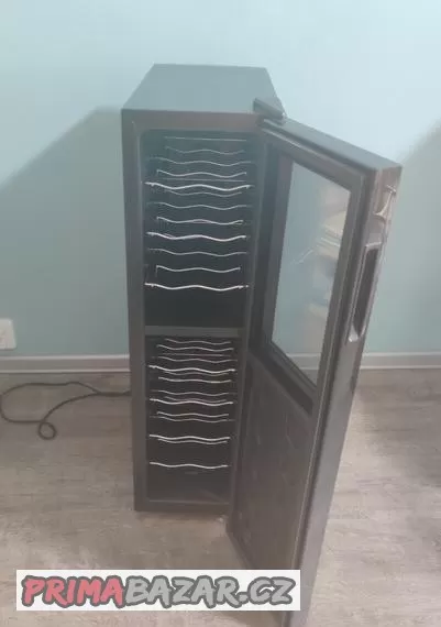Domácí vinotéka na 18 lahví vína, 8 lahví v horní zóně, 10 lahví ve spodní zóně. Nastavení dvou rozdílných teplot od 8-18 stupňů. Osvětlení. Rozměry 95x52x25 cm. Hmotnost 17,5 kg. Stav výborný. Důvodem prodeje: nedostatek místa v pokoji. Pouze osobní předání a platba v hotovosti!
