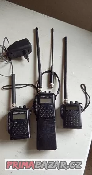 Prodám tři vysílačky.Svítí, šumí,tlačítka funkční.Jde na nich zachytit komunikace.Víc netestováno.Bez záruky.Vše co je na foto.S nabíječkou.Lze poslat poštou.Při rychlém jednání sleva.