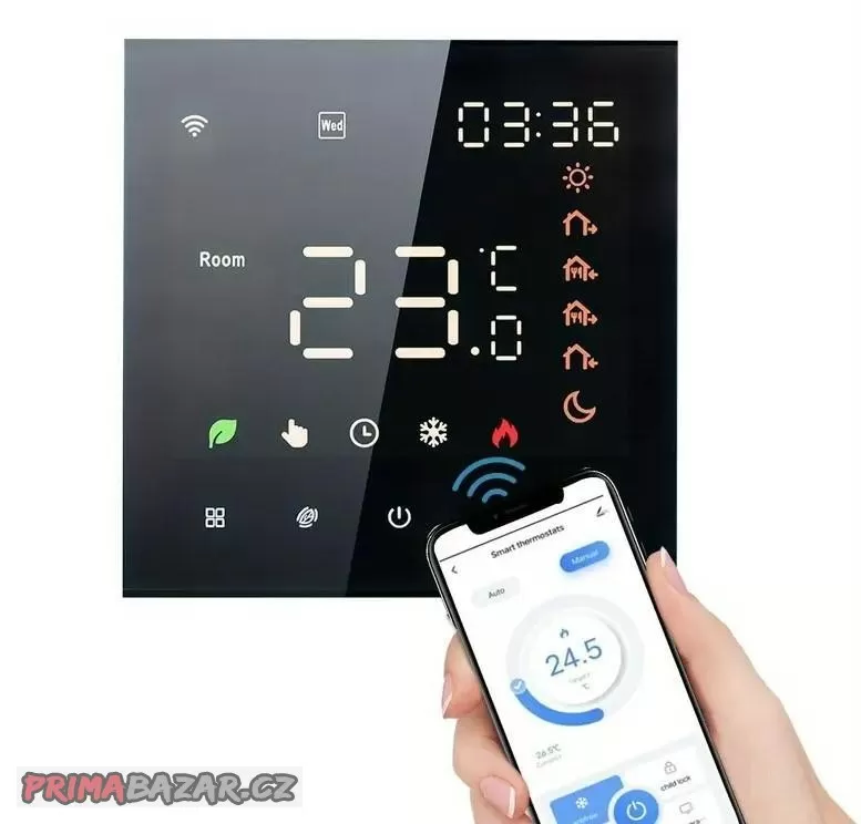 Smart Tuya WiFi termostat, hlasové ovládání - Alexa, Apple HomeKit, digitální programovatelný LCD dotykový displej, pro podlahové vytápění - elektrické i vodní. 5ks. Cena za kus 400Kč. Nepoužité zboží, zabaleno.
