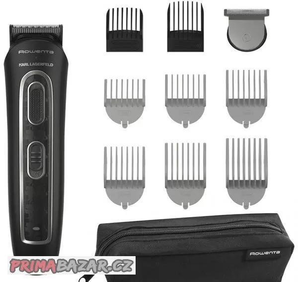 Zastřihovač na vousy a vlasy, všestranný 12v1, materiál břitů nerezová ocel, břity s životností až 15 let, vysokorychlostní motor, samoostřící čepele, počet hřebenových nástavců 6, min délka střihu 0,5 mm, max délka střihu 18 mm, doba provozu 120 min, doba nabíjení 90 min, led indikátor baterie, omyvatelné nástavce a čepele, rychlé nabití, typ napájení síťové a akumulátorové, technologie Wet & Dry - 100% vodotěsný, design s ikonou Karl Lagerfeld, barva černá, 15letá záruka opravitelnosti