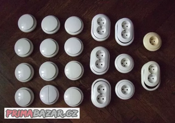 Použité, ale v dobrém stavu, jen jedna zásuvka je zažloutlá od sluníčka. 7 ks jednovypínač, 1 ks lustrový, 4 ks schodišťový, 5 ks dvojzásuvka, 3 ks jednozásuvka. Cena celkem 700kč nebo možno i jednotlivě. Předání v Roudnici nad Labem nebo možno poslat.