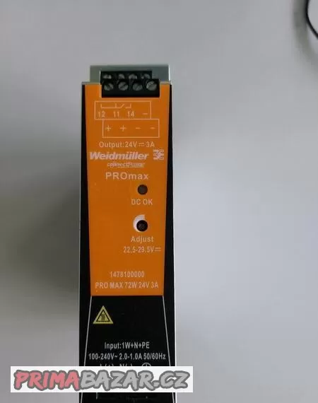 Weidmüller PRO MAX 72W 24V DC 3A síťový spínaný zdroj na DIN lištu, možnost nastavení výstupního napětí v rozsahu 22,5V - 29,5V, zdroj je odzkoušený a plně funkční