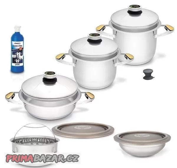 Novy set Zepter je vhodný pro menší domácnosti nebo například na chaty. Nenáročný na místo, které v kuchyni zabere. Nádoby Masterpiece poskytují bezkonkurenční výkon bez použití běžných toxických nátěrů pro maximální bezpečnost. Nerezová ocel 316L, ze které jsou nádoby Zepter vyrobeny, předstihuje všechny ostatní materiály, používané při výrobě nádob na vaření, protože nepřipaluje jídla, neoxiduje a nezpůsobuje alergie.