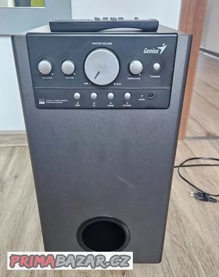 Podám starší funkční zesilovač s subwoofewrem z 5.1 sestavy. Součástí je funkční dálkové ovládání. Pouze osobní odběr