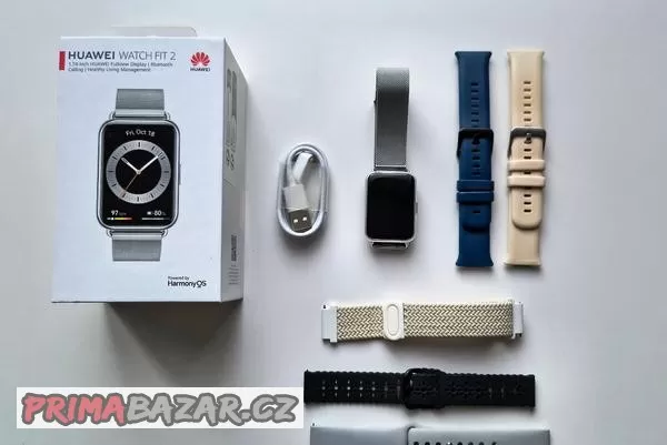 Kompletní příslušenství, baleno v originální krabičce. Přiložím dva originální Hueawei silikonové řemínky + tři neoriginální 20 mm.