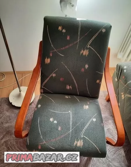 Polstrovaná již jednou renovovaná křesla z 50. let, 2 ks, dřevěná kontstrukce. Zájemci mě prosím kontaktujte na mail: markifialova@gmail.com