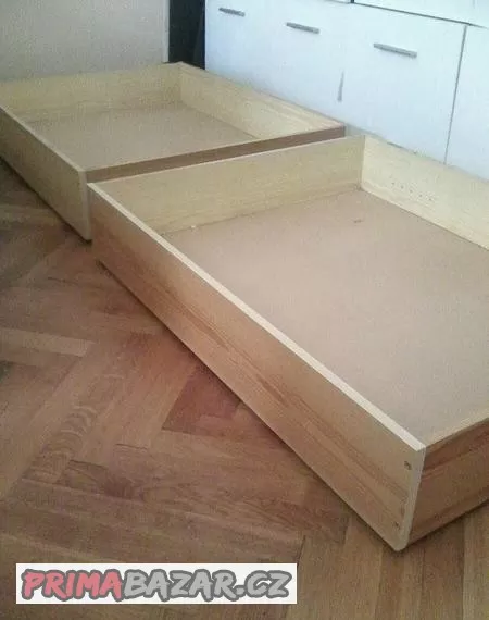 2 šuplíky na kolečkách - úložný prostor pod postel, materiál dřevotříska potažená světle hnědou dýhou, rozměr: cca. 98x77,2x16,2cm, provedení a barevnost viz. poslané fotografie, možno nezávazně prohlédnou na Praze 4 Pankrác, cena za 2 šuplíky je 1590,- Kč, kontakt: 702978640