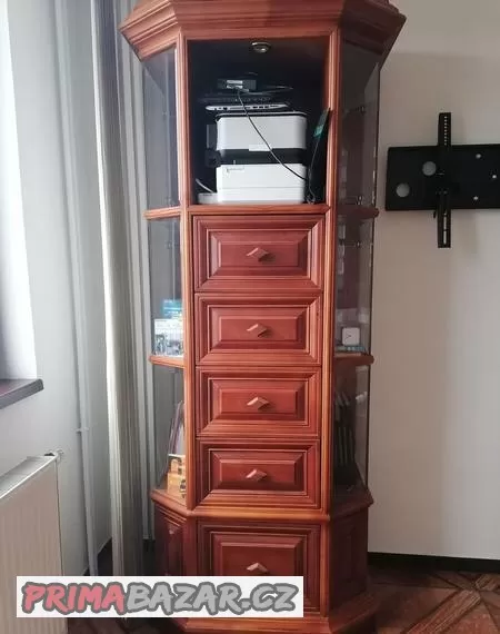 2 vysoké vitríny, dlouhý pult
